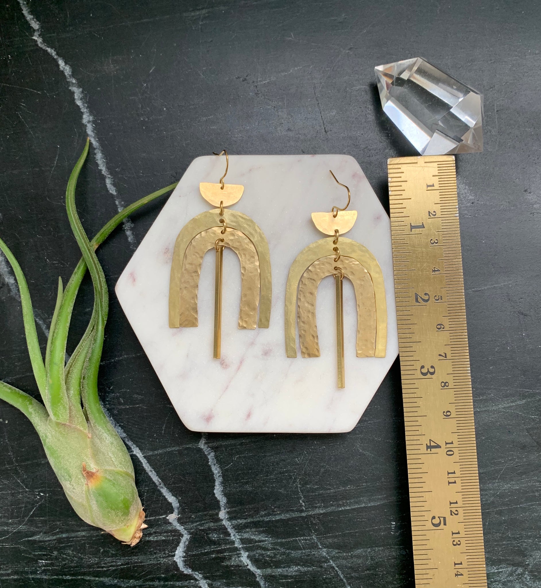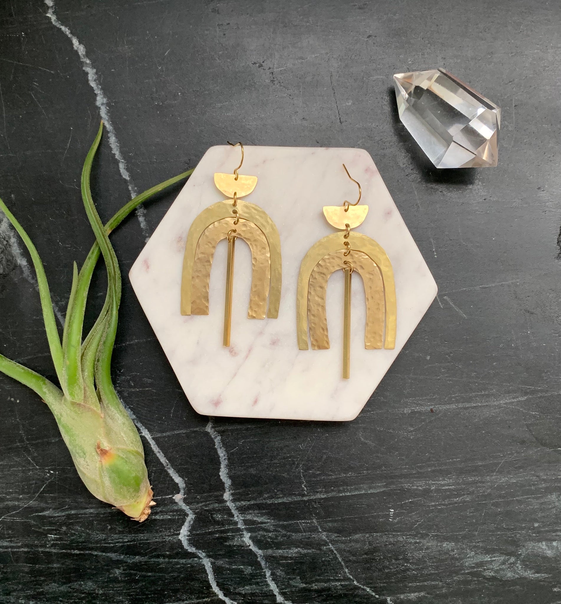 Raw brass elements combined to create these bold & cheerful statement earrings