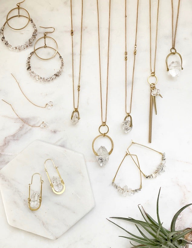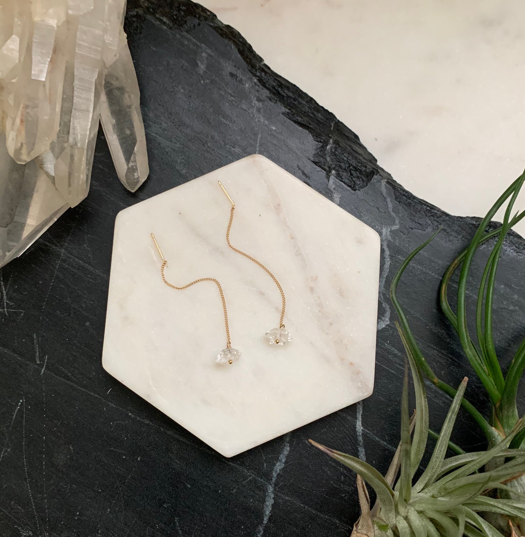 Tiny Herkimer Diamonds threaded on to gold plated earring threaders.