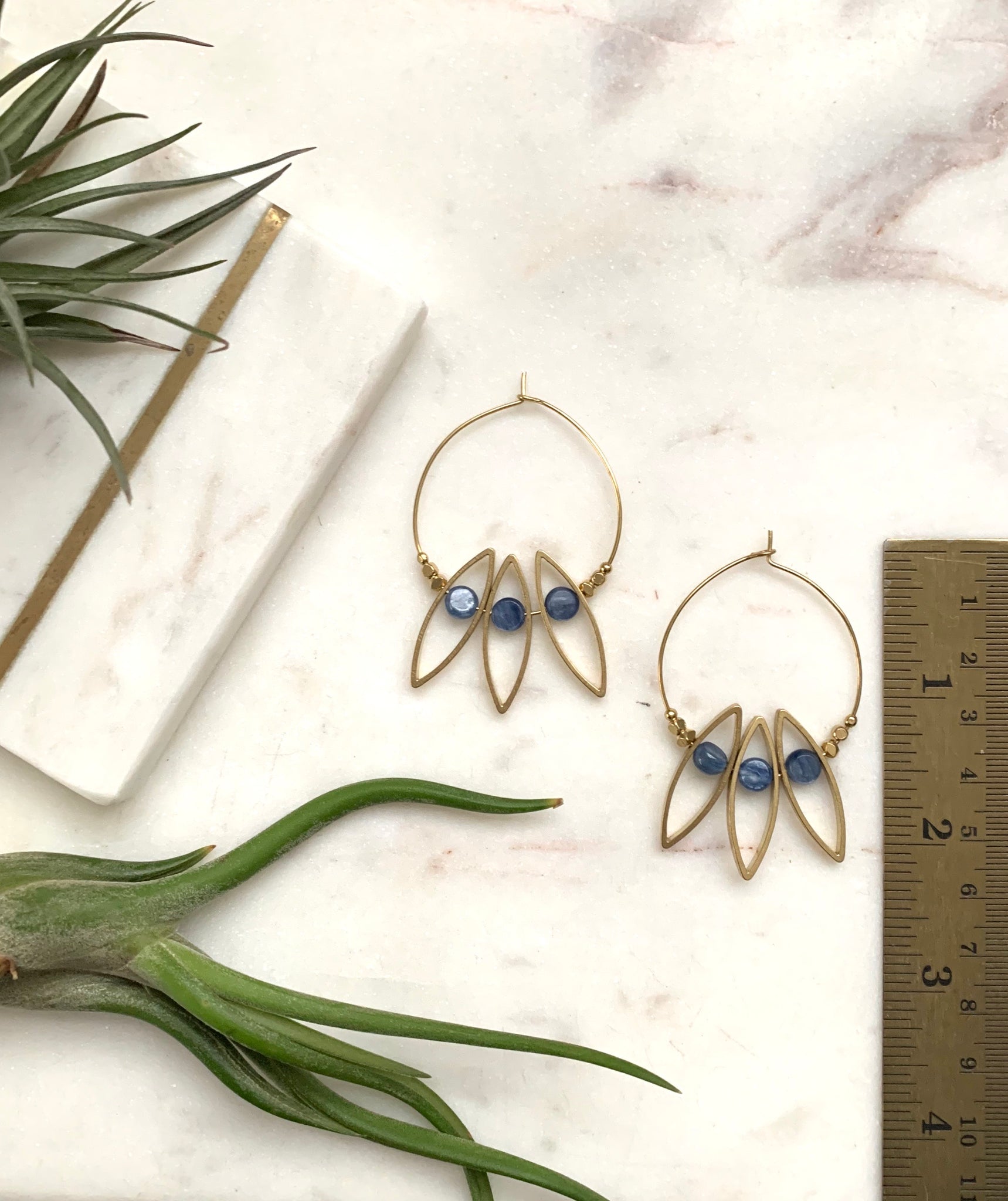 Hoops Earrings composer of raw brass elements and Kyanite Beads