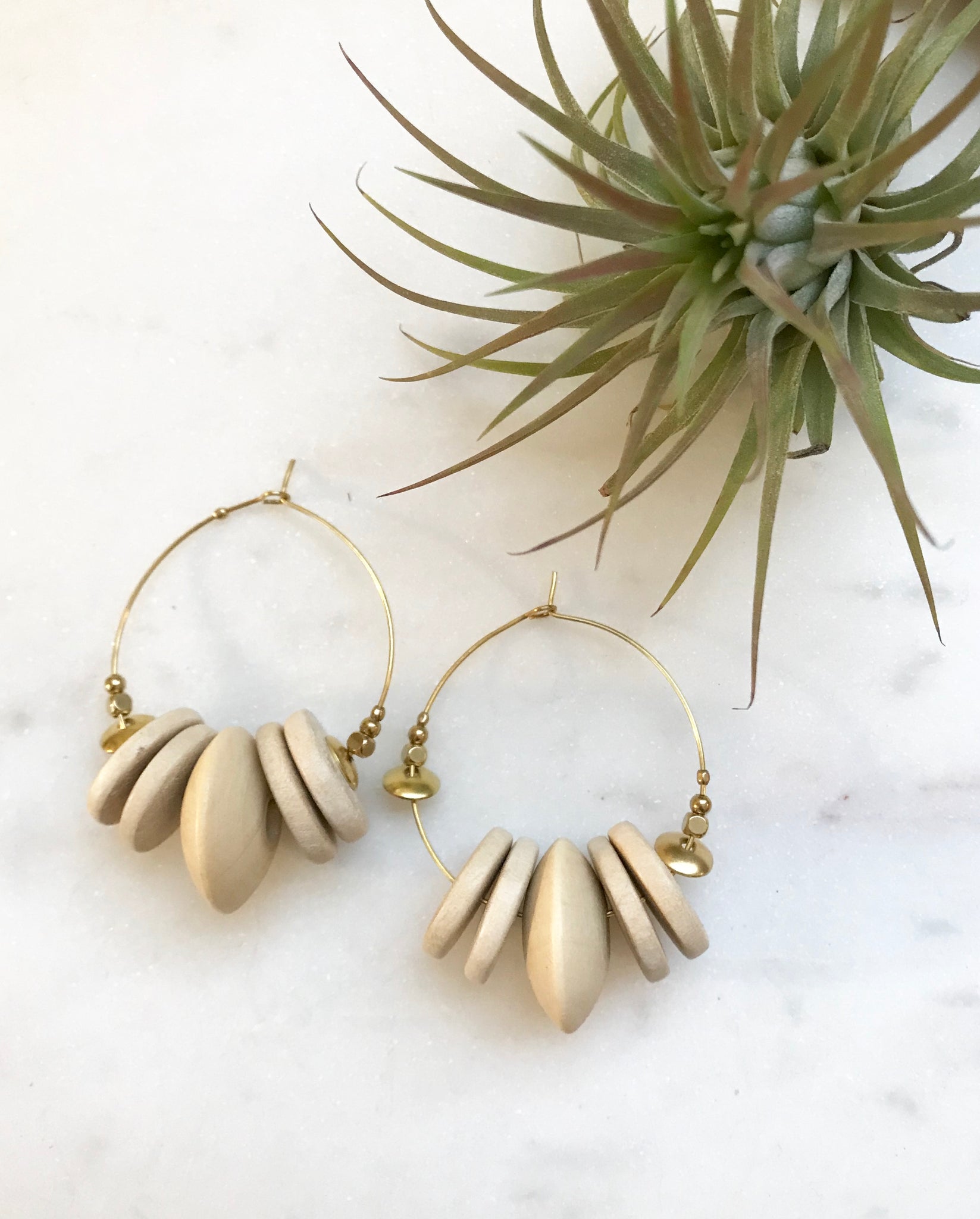 Hoops Style 2 on the right is a retro fan style made with wooden beads and bras accents.