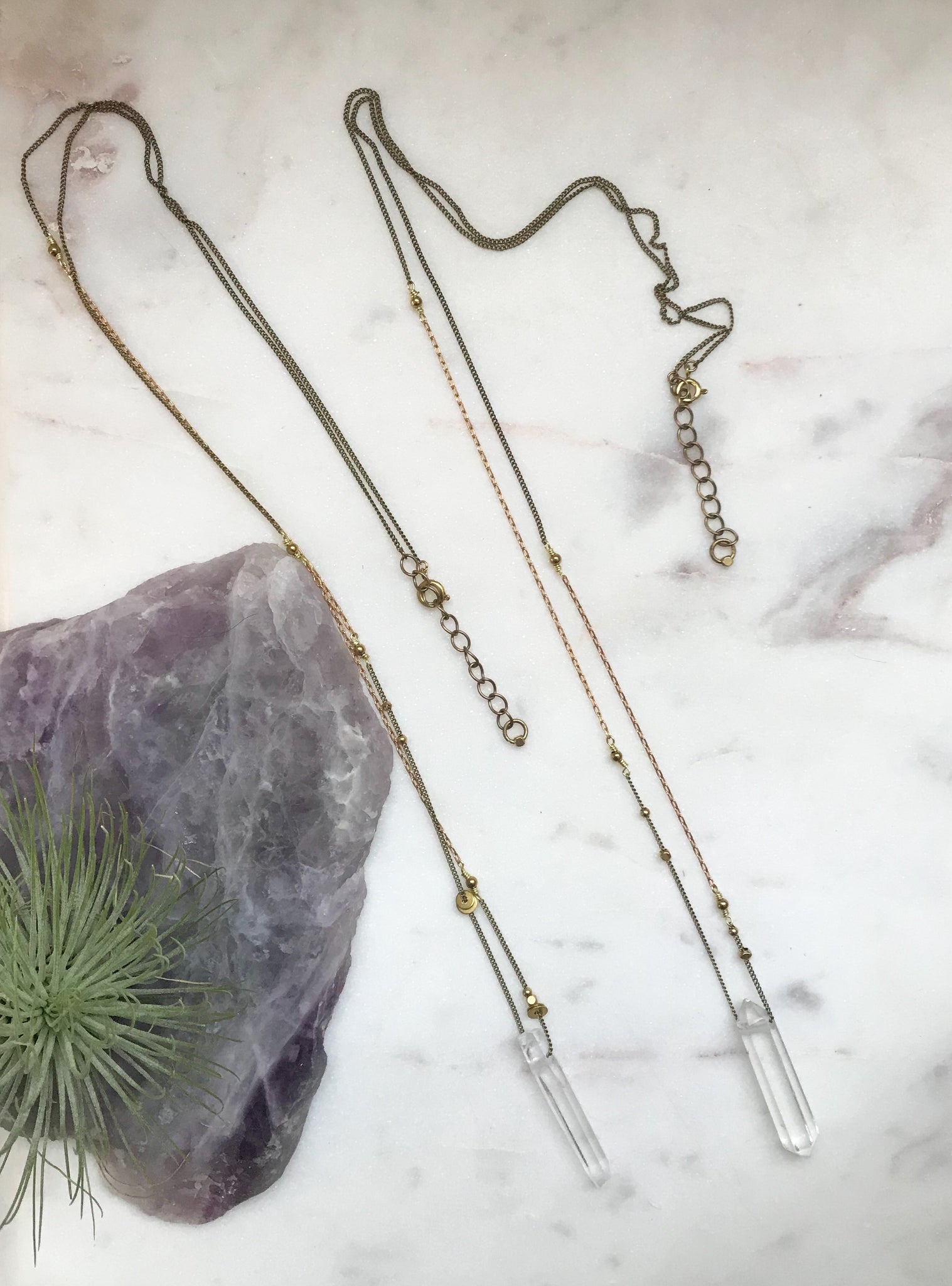 Mix chain necklace made of raw brass and antique brass with brass bead accents.