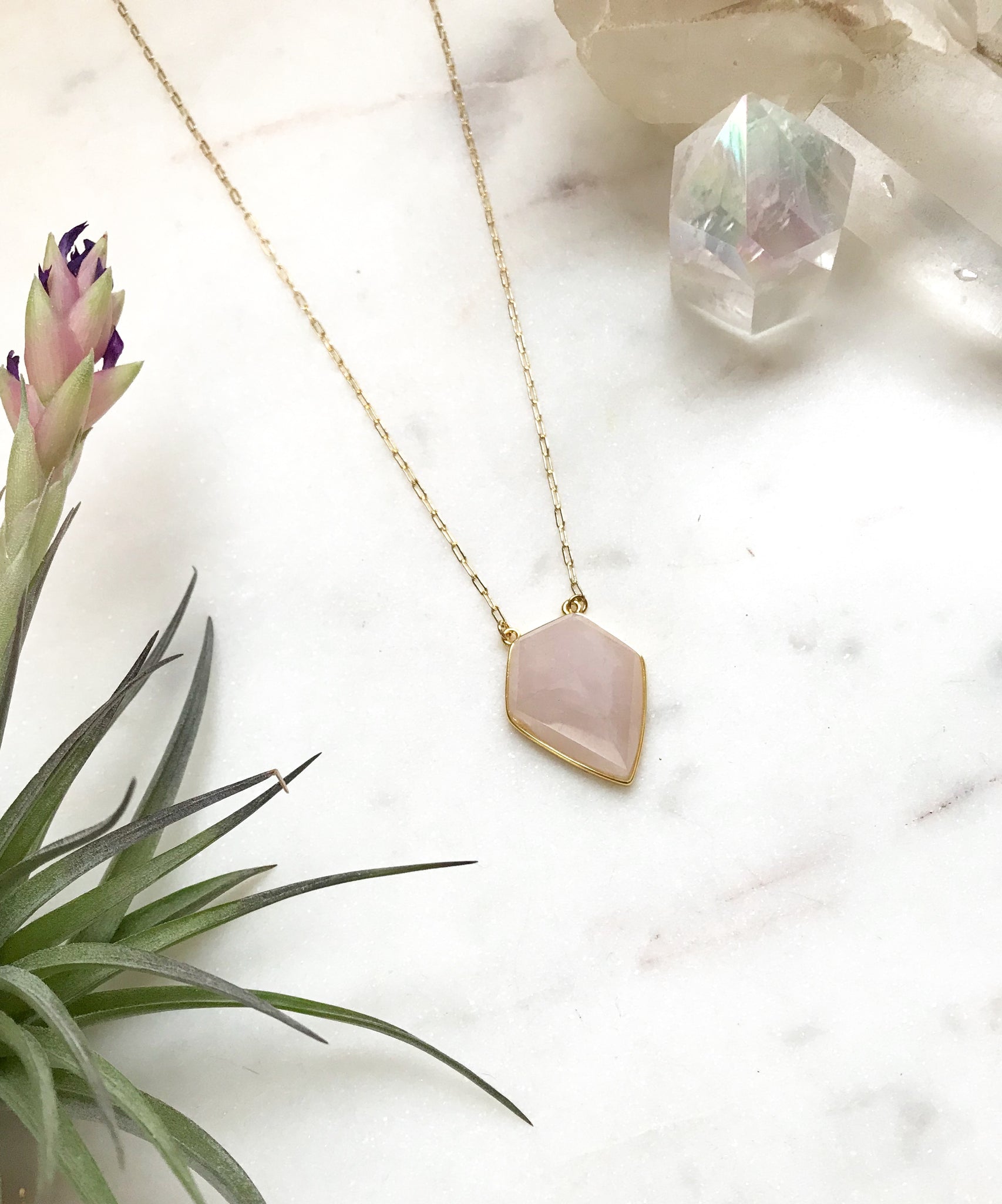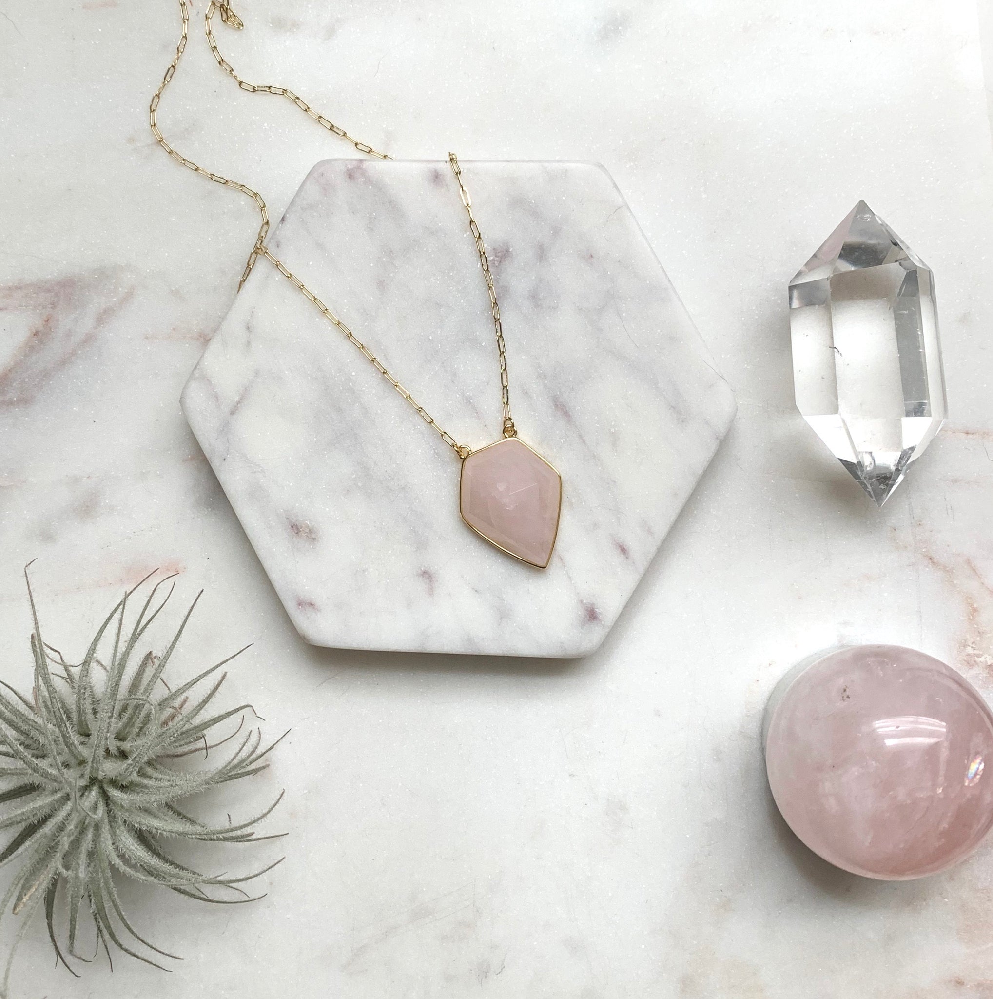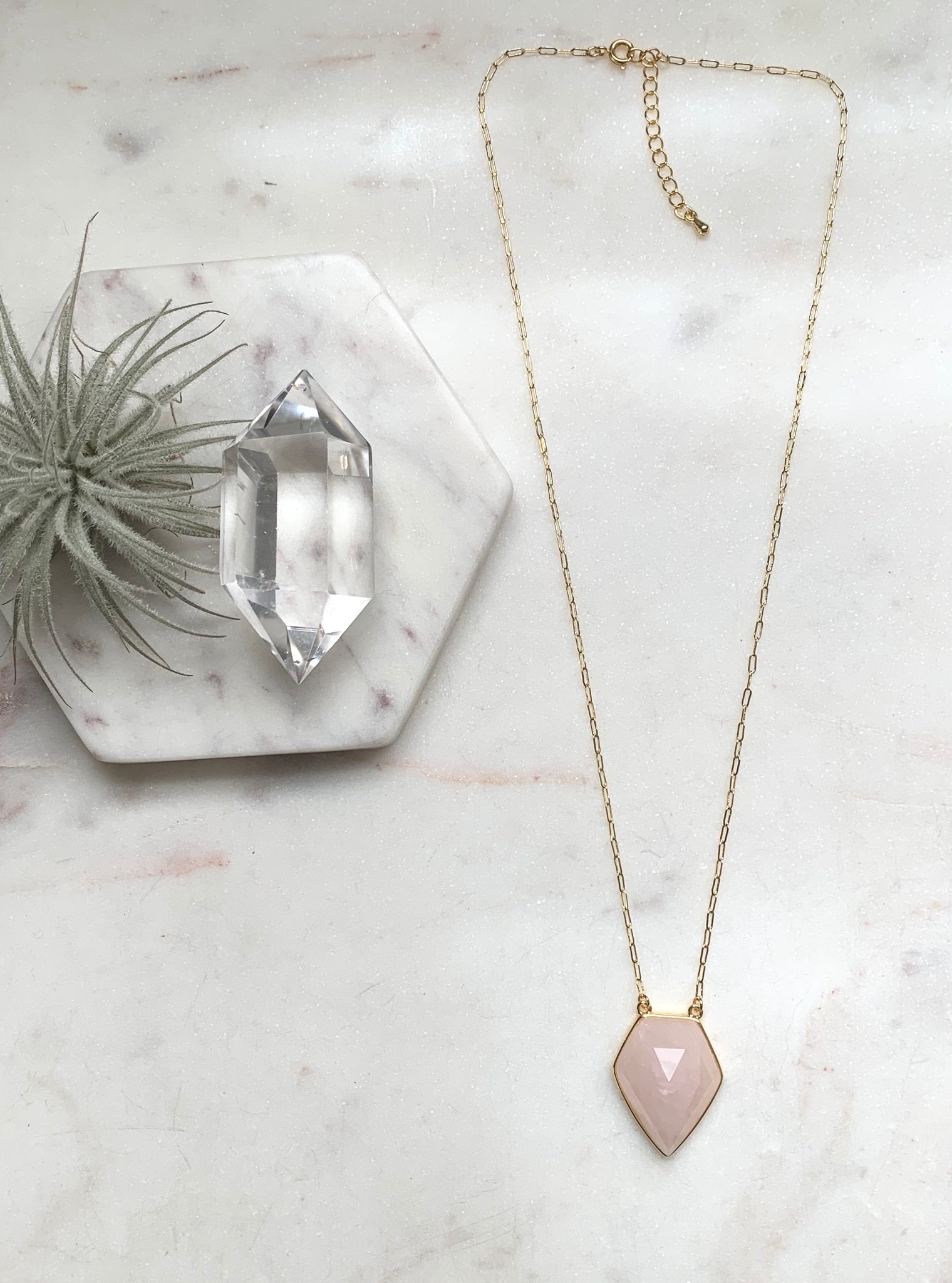 Faceted Rose Quartz Pendant on Gold Plated chain.