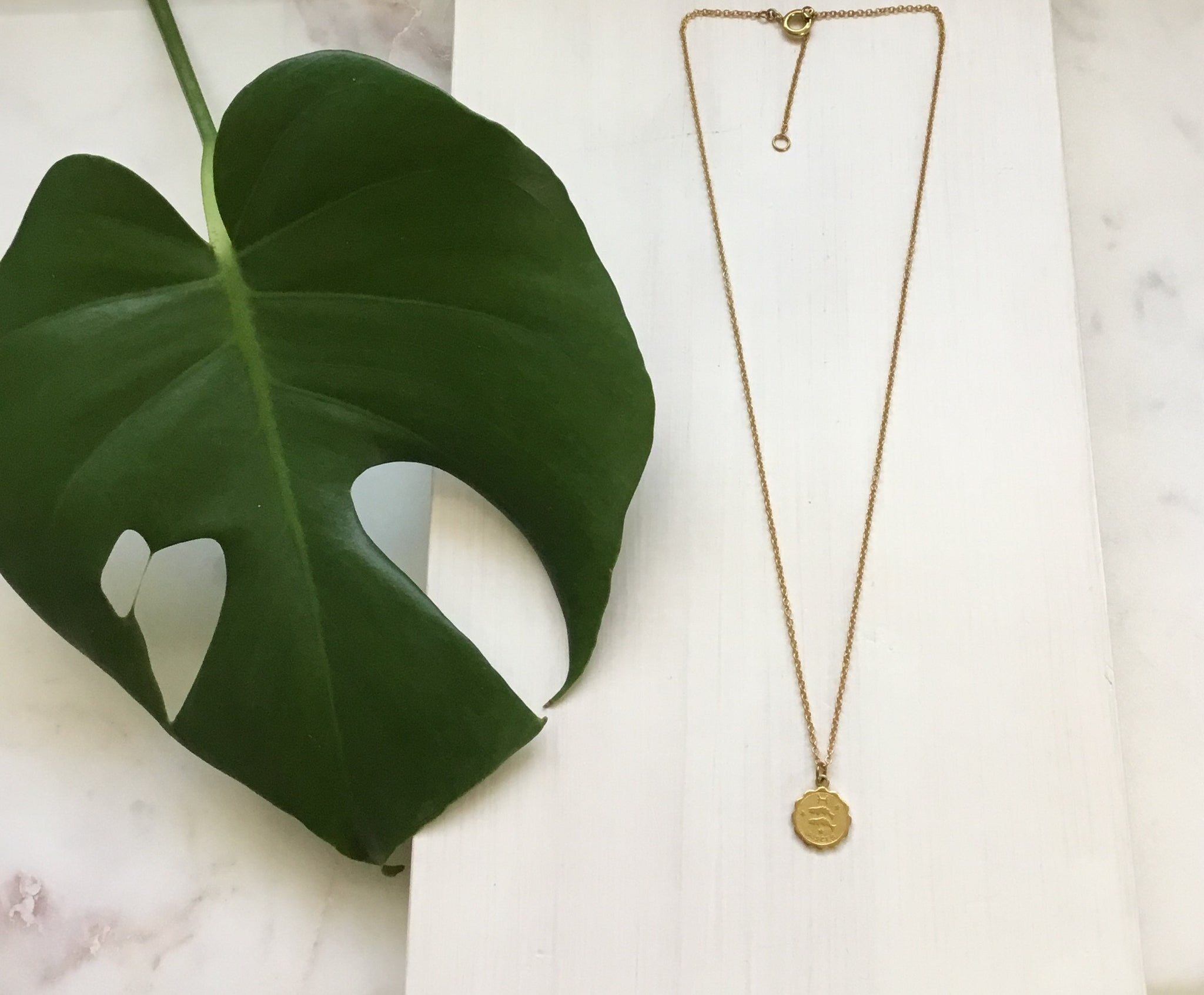 Both charm and chain are made of raw brass. Chain measures 16" with one longer option at 17".