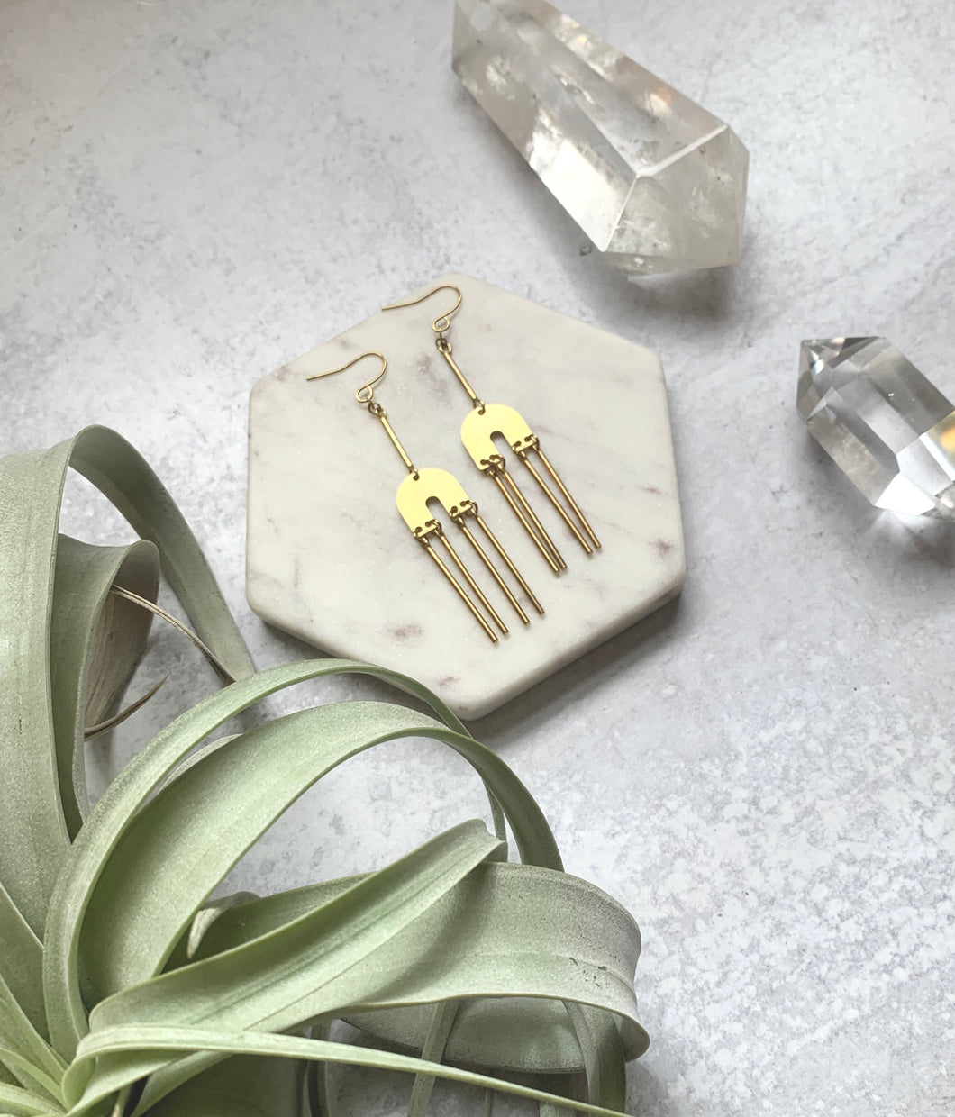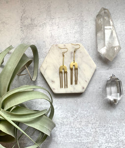 These delicate chime earrings are made of raw brass elements