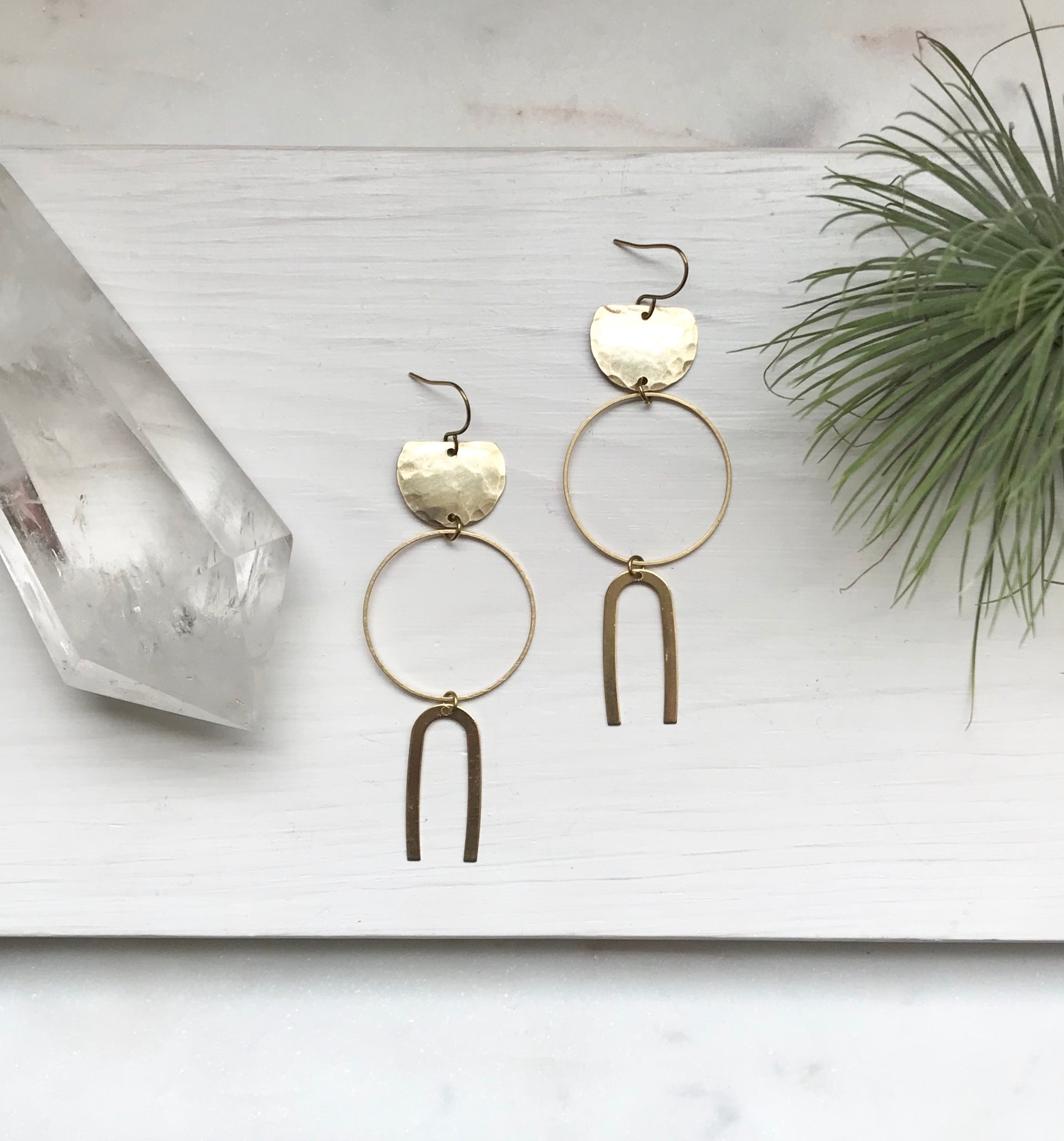 Raw Brass Earrings measure approximately 2" long