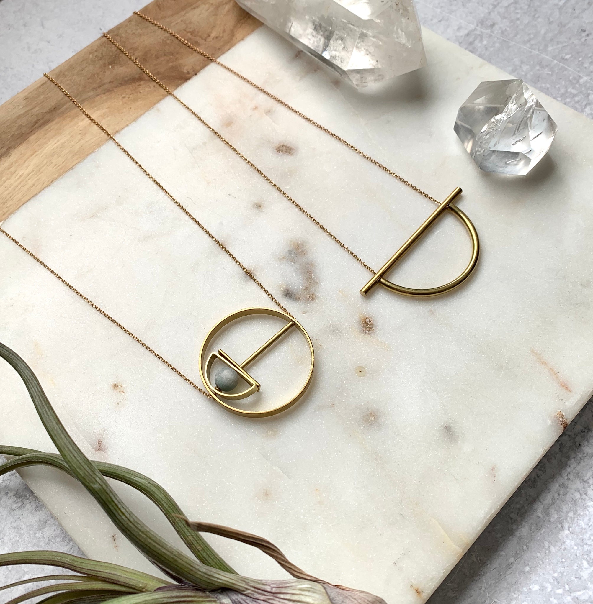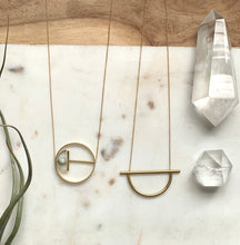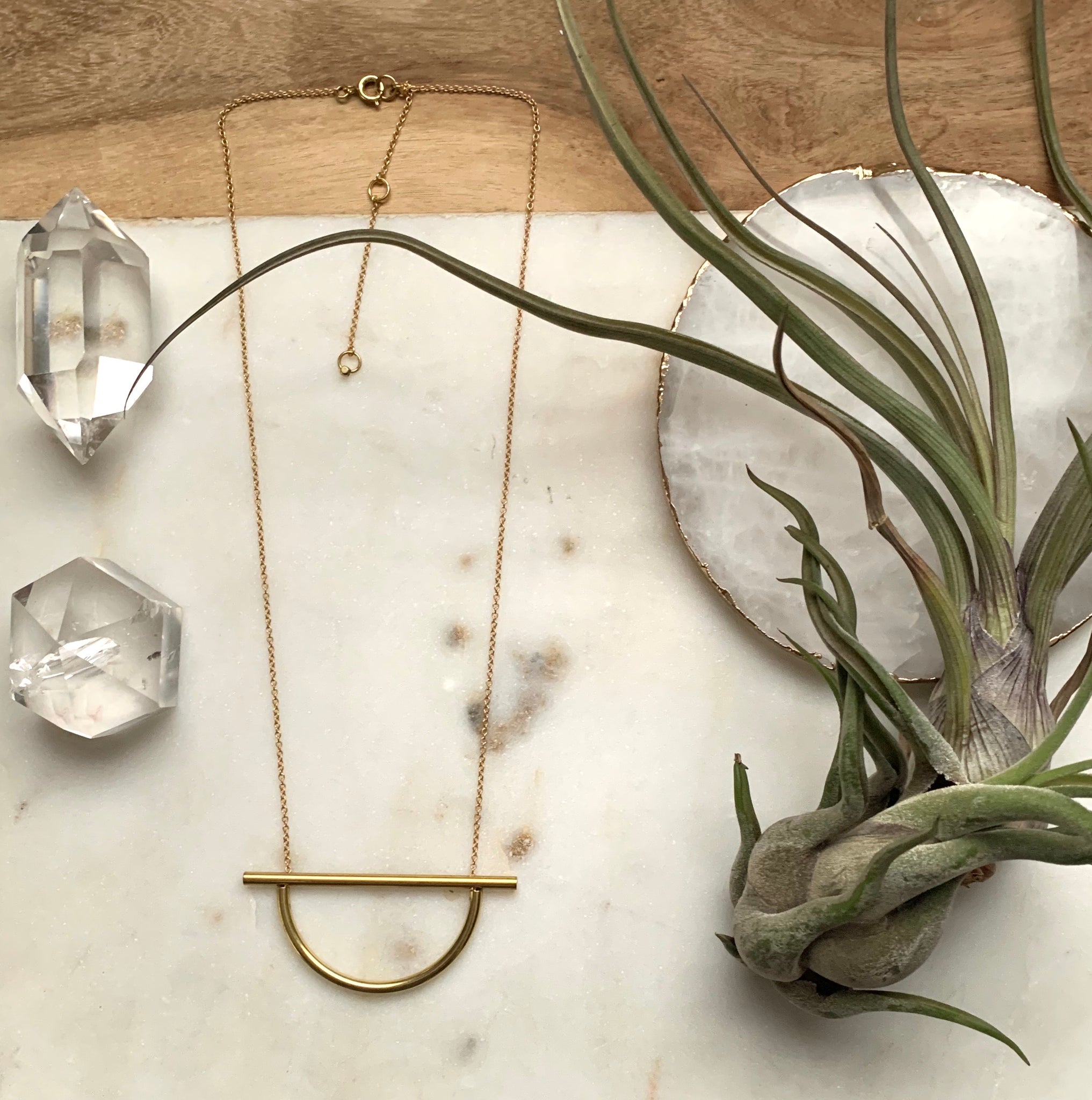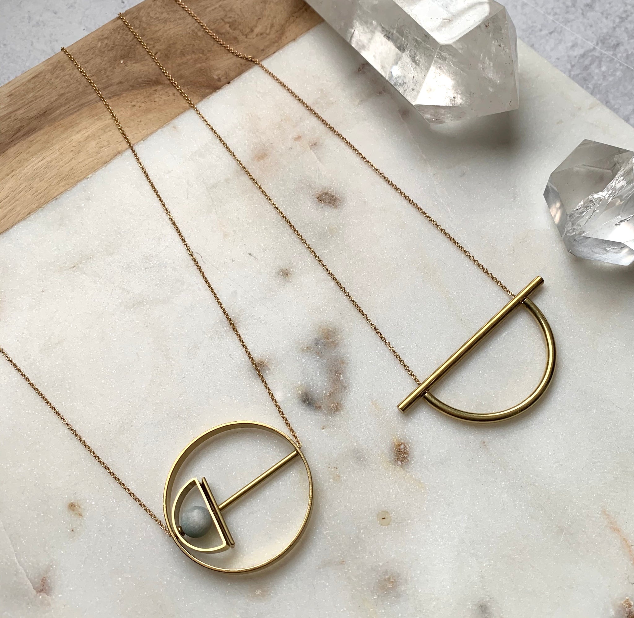 Raw brass chain and raw brass elements are combined to create these minimal statement necklaces.