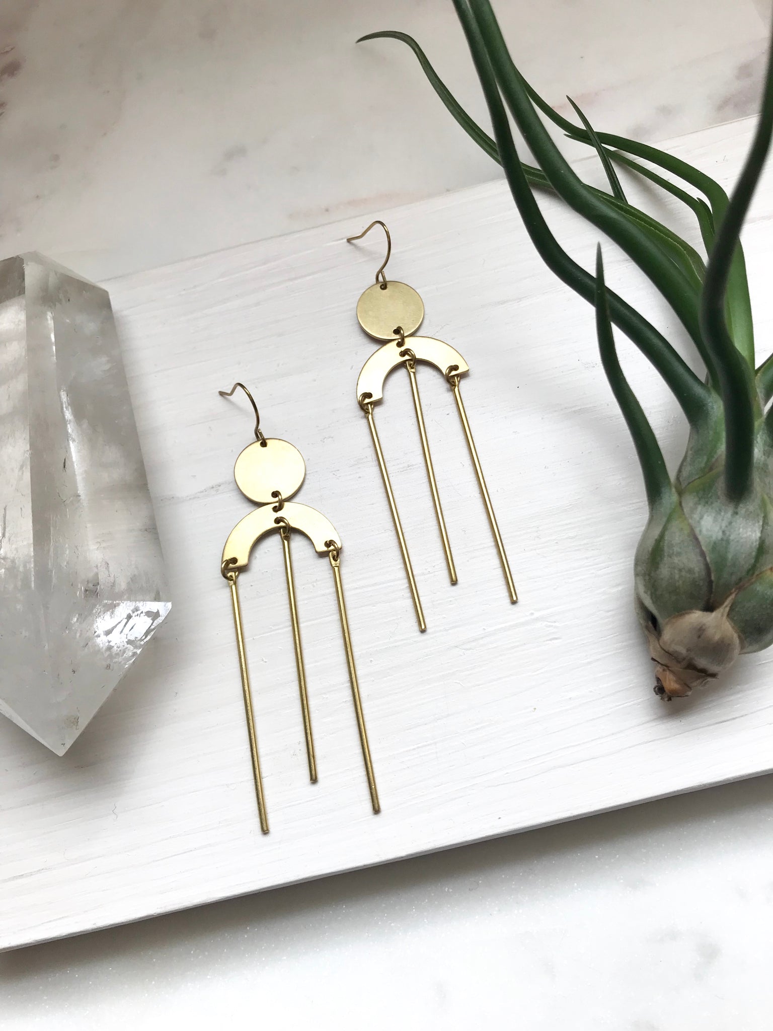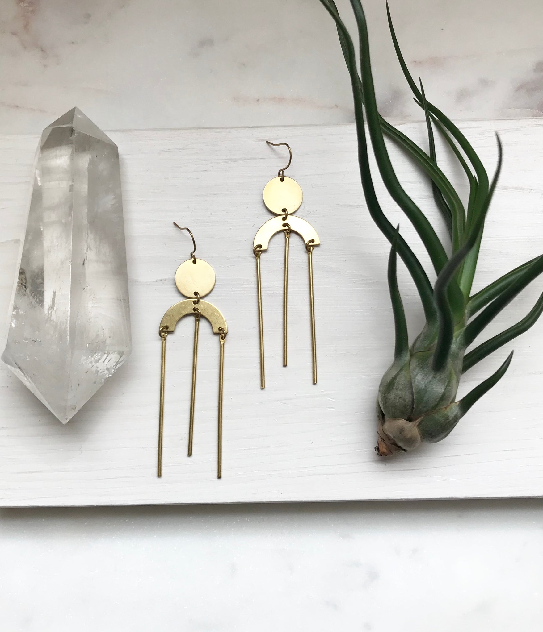 made entirely of raw brass, these earring measure approximately 3"